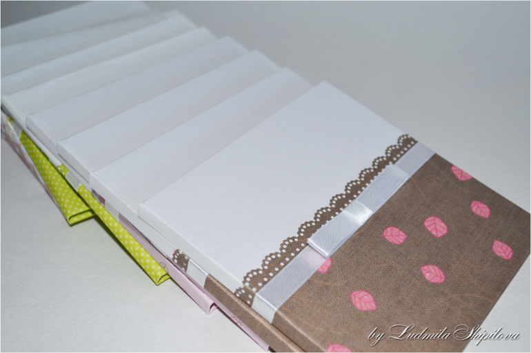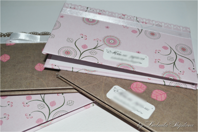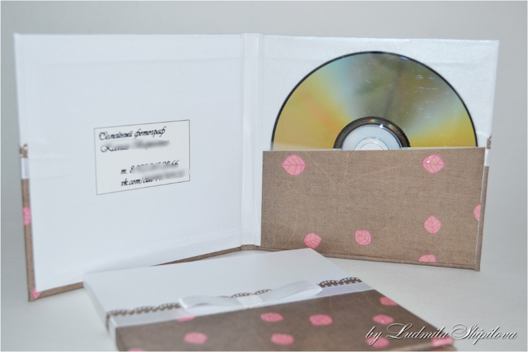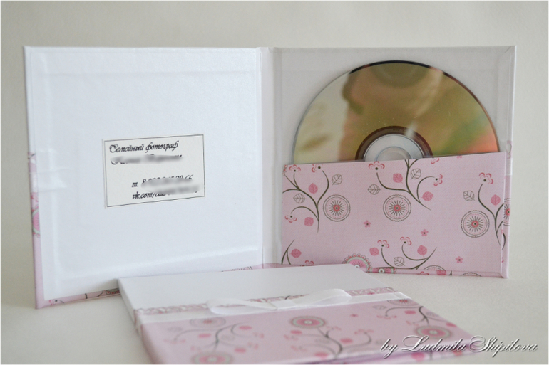 Размер 13*13 см. В основе 1,5 мм. картон,обтянуты боксы текстурной и перламутровой дизайнерской бумагой,из декора - скрап бумага, лента и дырокольный бордюр. Рассчитаны на 1 диск, а т.к. в нашем городе оказалось сложно найти спайдеры (крепления для дисков) сделала кармашки)))