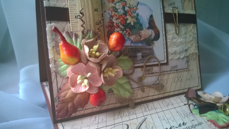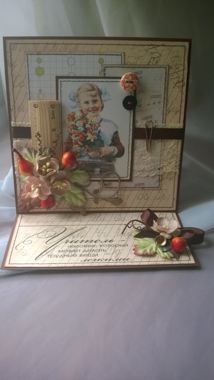 3) Открыточка. Размер 15,5 на 15,5 см.С полюбившейся мне картинкой. Идею с линеечкой позаимствовала у Светланы нашей)))