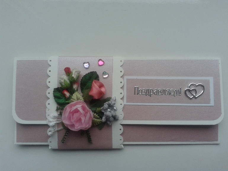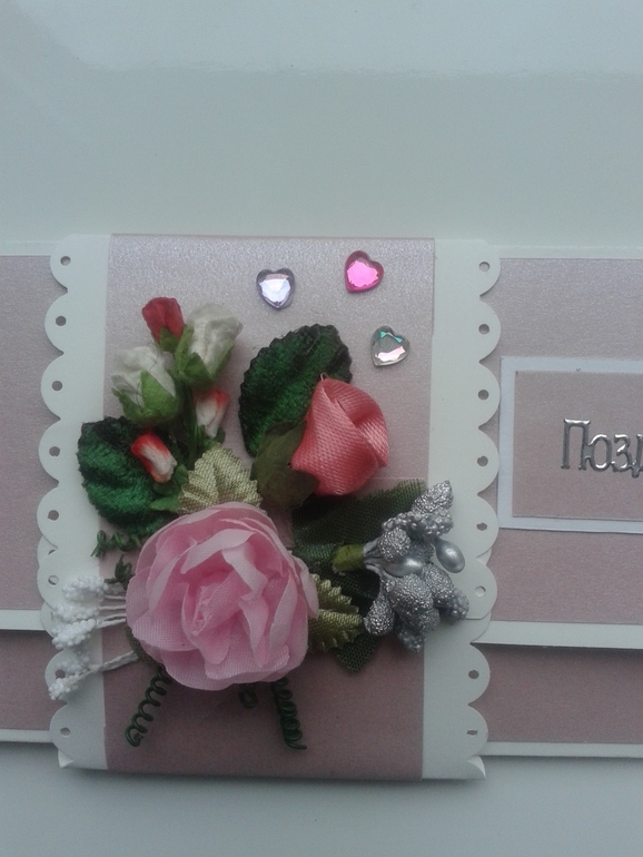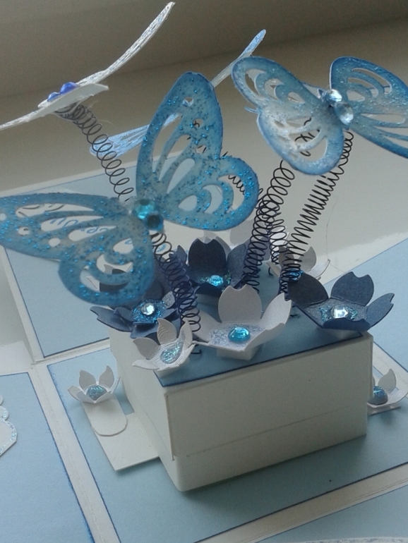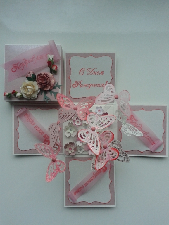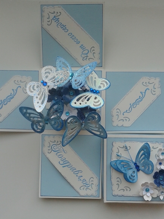 Первая для подружки дочери. Под бабочками спрятан боксик для подарка (сережки и кулон). Сфотографировать забыла