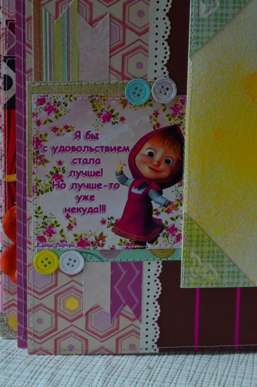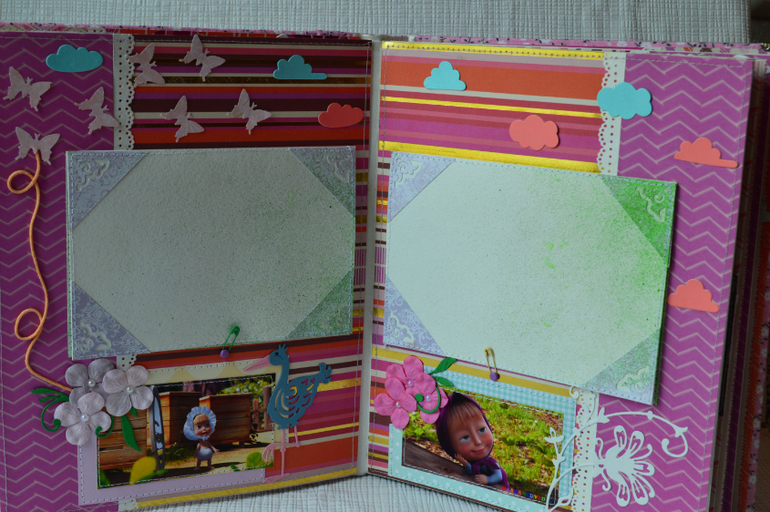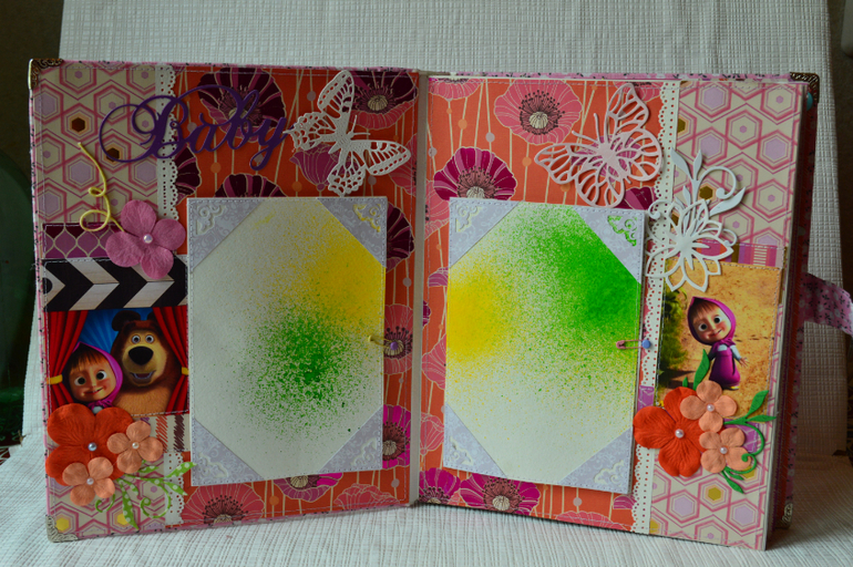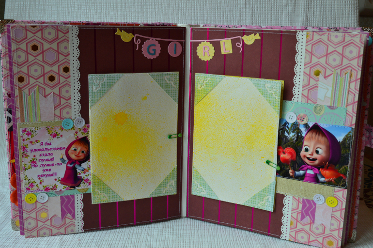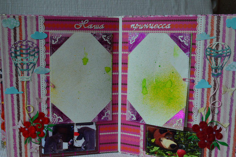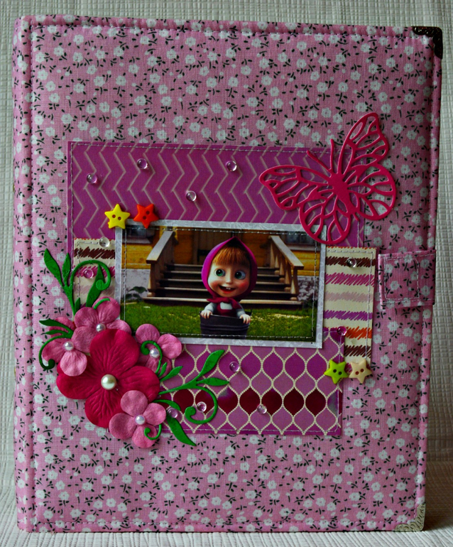 Альбомы ДетскиеДобрый день, хочу вам показать фото альбом для девочки сделанный по мотивам мультика "Маша и медведь". Размер альбома 21х26 см., вмещает в себя более 60 фотографий.