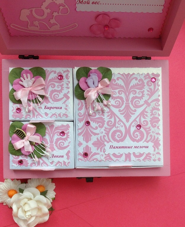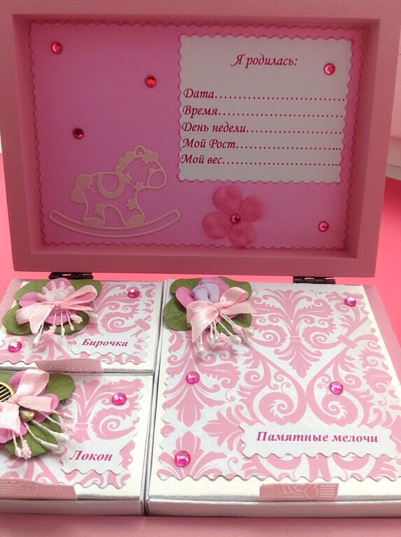 Как всегда положила и ленточку для бирочки и пакетик для первого срезанного локона и баночку для первого выпавшего зубика, просто забыла сфотографировать :))) а последняя потому что размеры шкатулочки маленькие, а она очень затратная в итоге получается... :( Еще 2 голубых лежат и все, на этом стоп :) спасибо, что зашли в гости :)
