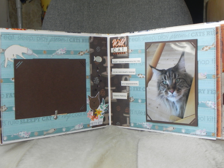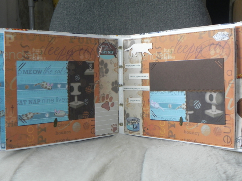И еще покажу альбом про или о кошке. Размер 20*25, вмещает 40 фотографий размером 10*15. Украшений в альбоме минимум.