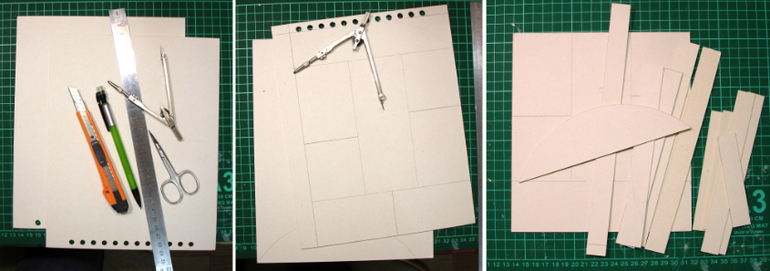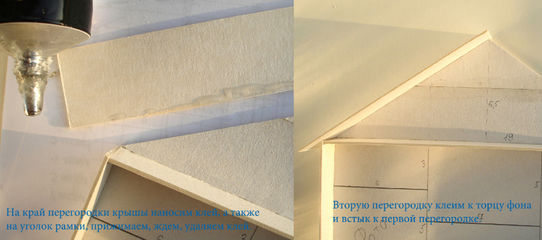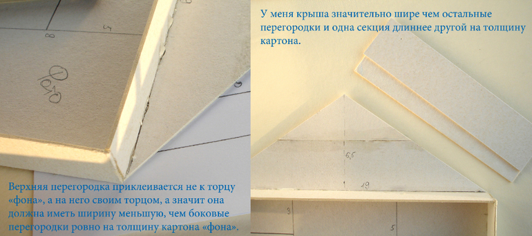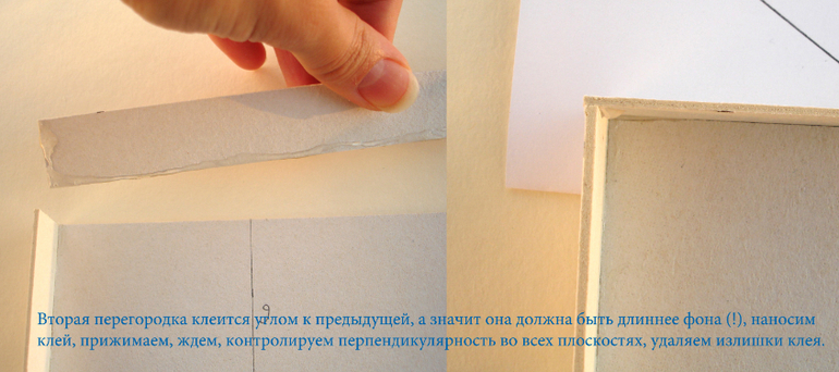 Итак, наш фон размечен, все лишнее отрезано, боковые перегородки нарезаны, начнем их клеить.