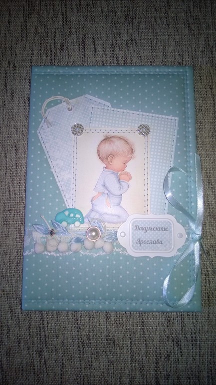Попросили сделать мальчуковую нежную папочку в подарок. У меня получилось так: