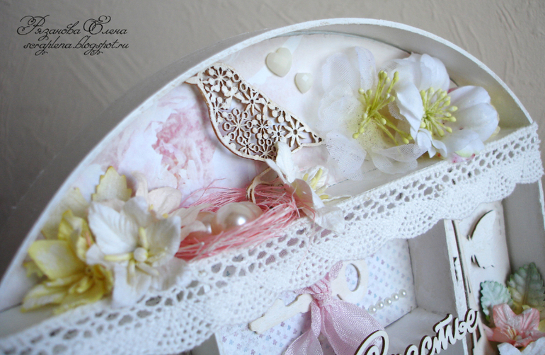 3. Украшение торцов перегородок (надпись или завитки из чипборда, кружево и т.д.)