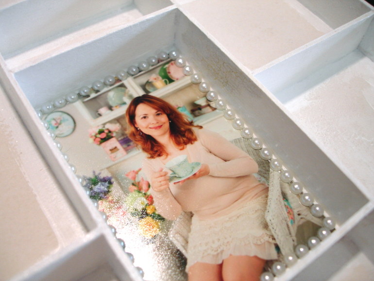 Итак, начнем украшать, я начала с самого простого, с фото- украсила полосками полужемчуга.
