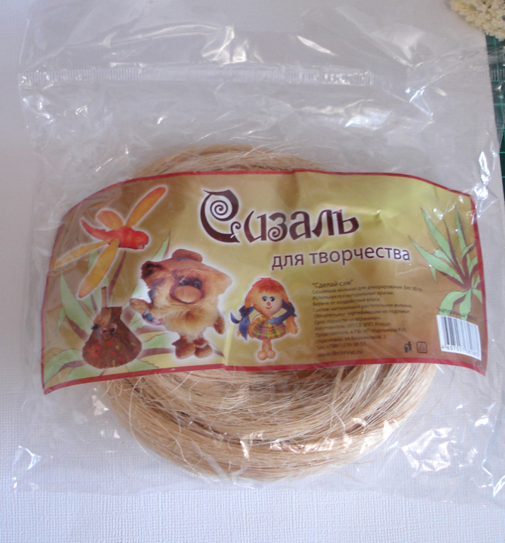 А теперь предлагаю сделать гнездышко с птичкой. В этот раз я купила сизаль, в прошлый раз я раздербанила на волокна сетку от упаковки цветов. Отрезаем небольшой пучок распушаем его, теперь из одной прядки делаем кольцо, это стенки гнезда.