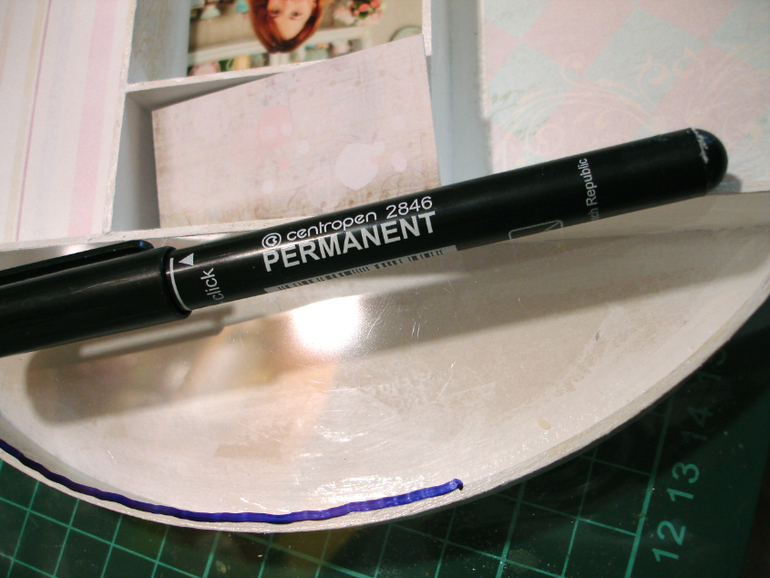 А есть второй вариант, я взяла прозрачную пленку и при помощи перманентного маркера очертила нужный полукруг, на самом деле сильно "упираться" в точности мне не нужно, потому что я края бумаги "треплю" (ножницами) и загибаю край. Но это на ваш вкус, а вот тонировать края бумаги я все-таки советую, так работа выглядит объемнее и больше соответствует статусу "шебби-шик".