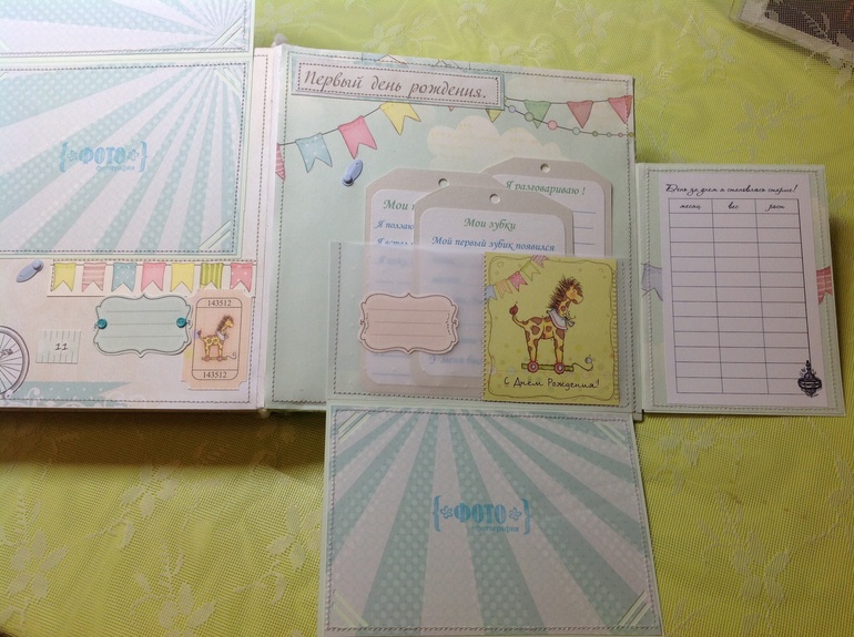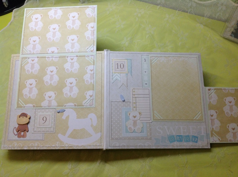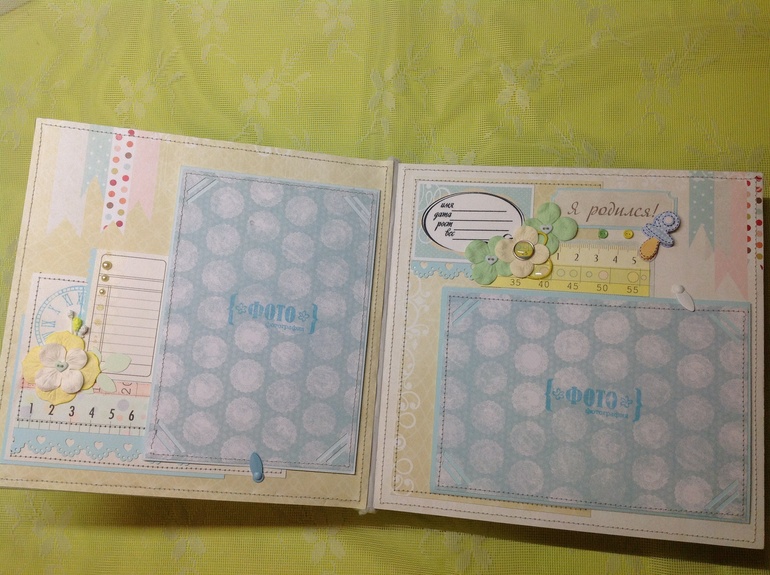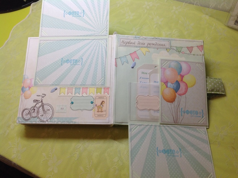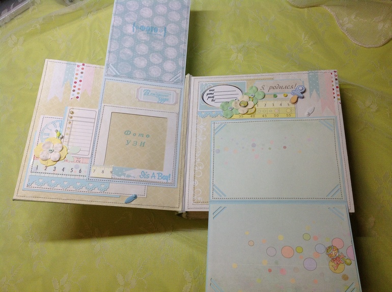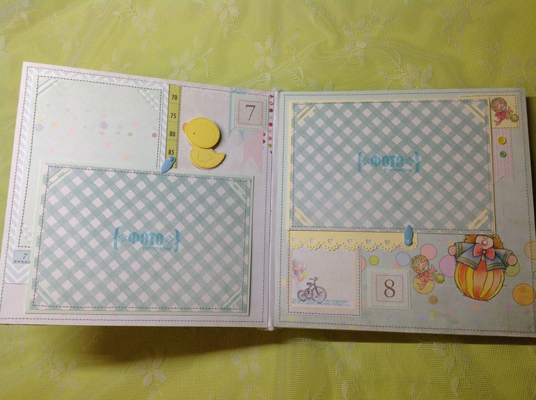 Альбомы ДетскиеВсем привет! Я к вам с новым альбомом для маленького мальчика. Формат 20х20см., в мягкой обложке, закрывается на магнитную застежку, 7 разворотов. Альбом для фотографий первого годика жизни малыша. Есть место для фото узи, много открывающихся элементов, рассчитан на 36 фотографий формата 10х15см. и 7 шт. формата 9х13 см. Альбом свободен и ждет своего маленького хозяина.