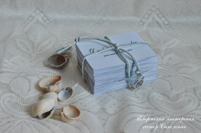 Карточки с причинами. И ракушки привезенные с побережья бурного Азовского моря. Послужили небольшим подарком для заказчицы.