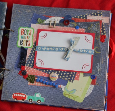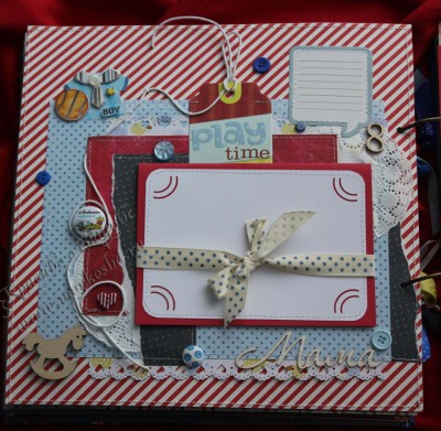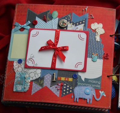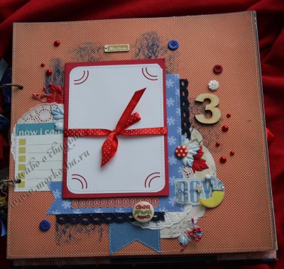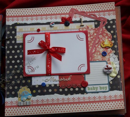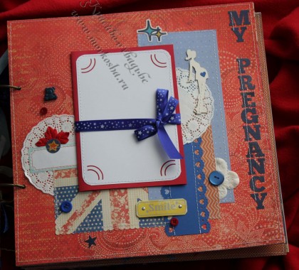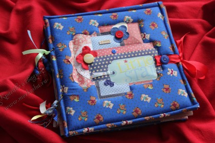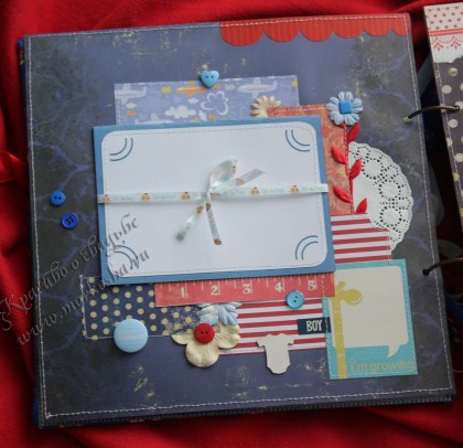 Очень яркий красно-синий и абсолютно мальчишеский фотоальбом «Сынок». Размер альбома 30.5 на 30.5см. В него уместится 42 фотографии 10х15см, имеется дополнительный карман для фото. Также в альбоме есть таблички для записи достижений, роста-веса малыша, информация о зубах, место для отпечатка ручки-ножки, место для браслета, бирочки и первого узи мамы.
