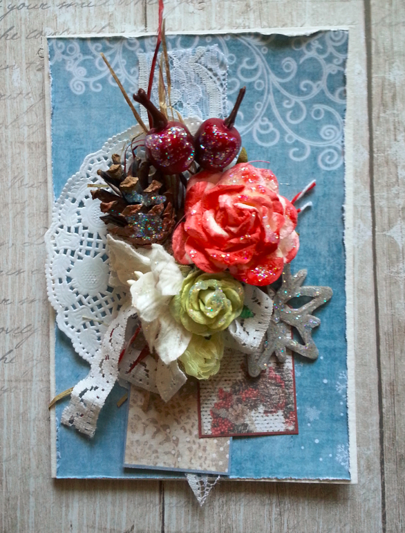 На мастер классе мы с вами создадим уютную и красивую новогоднюю открытку. Мы поработаем с чудесными праздничными мотивами, бумагой и украшениями, и конечно припорошим все снегом!