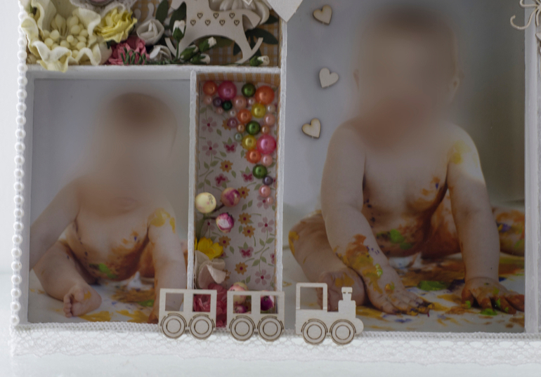 Теперь чуть поближе детальки. В основном использованы цветочки и чипборд.