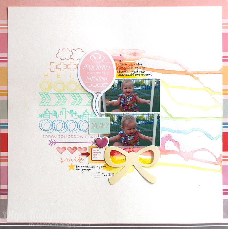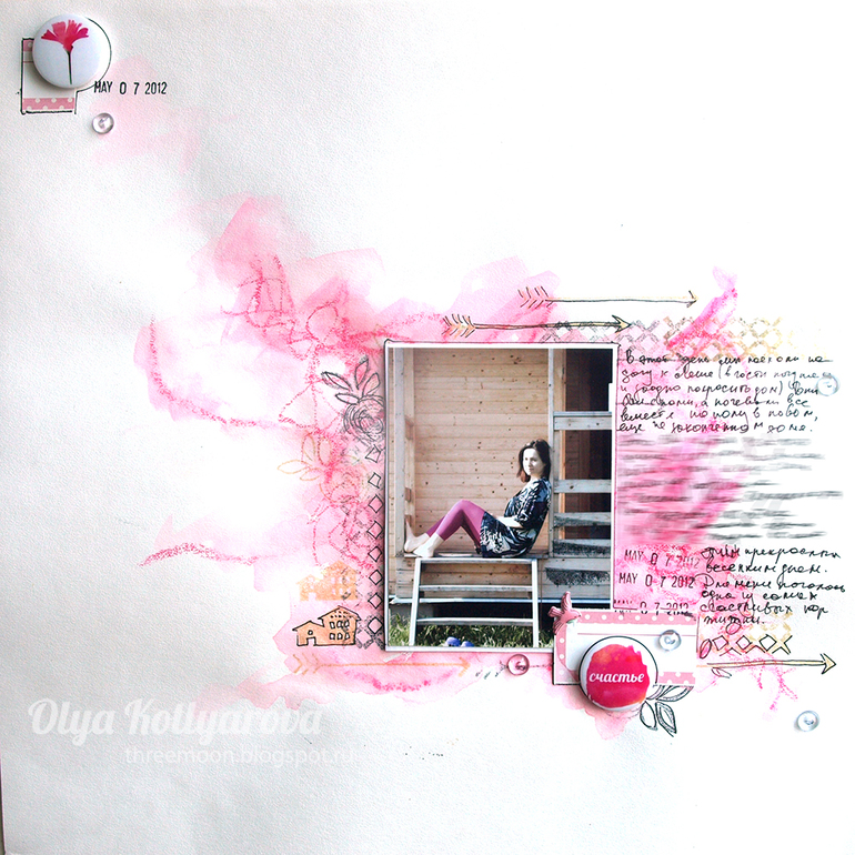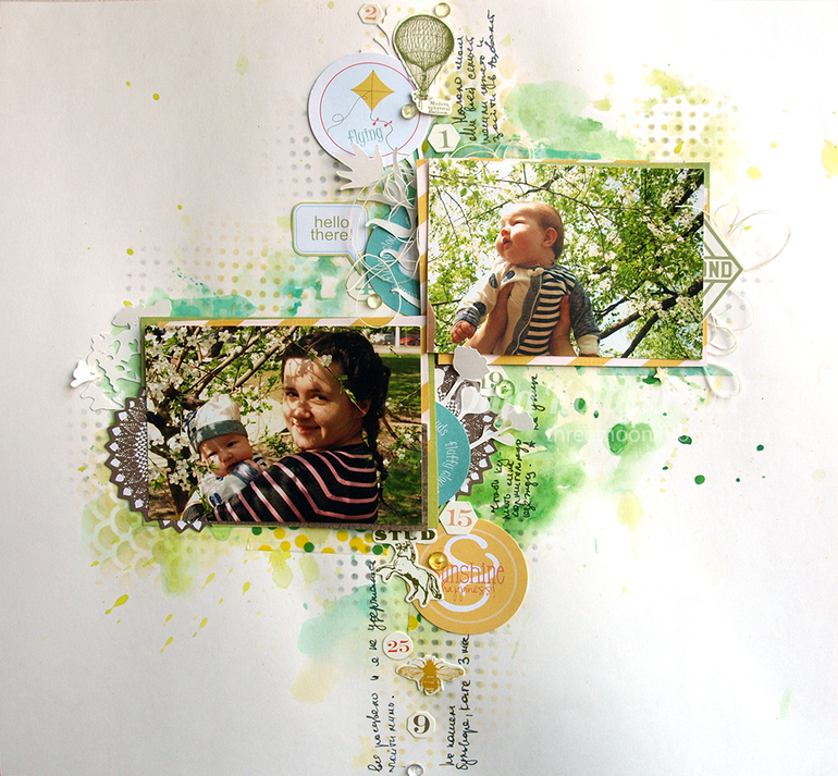 Вообще, я обожаю скрапить на белом листе! Большинство работ с него начинаются, ну и много белого вообще люблю - он даёт лёгкость, свежесть.