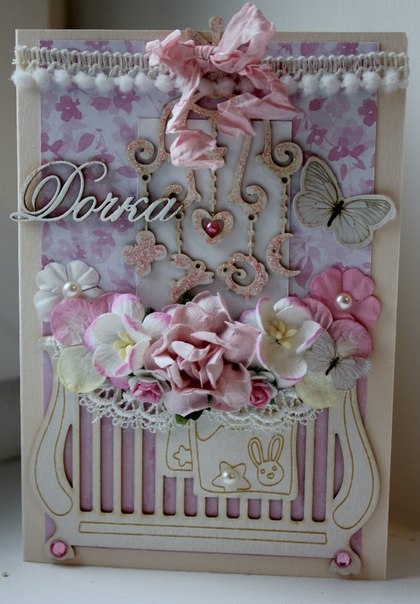 Акрилом не красила специально, хотя руки очень чесались ))) но мама не сторонник акрила, так что эта открытка специально для нее, без его использования)))