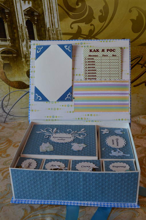 Коробки, шкатулки, комодыДобрый день, показываю вам коробочку для хранения "маминых сокровищ", которую сделала по настроению, просто захотелось ), поэтому она продается, ищет свой домик. Коробочка размерами 25х20х8 см, место для трех фотографий, кармашек и 6 карточек для важных записей мамы.