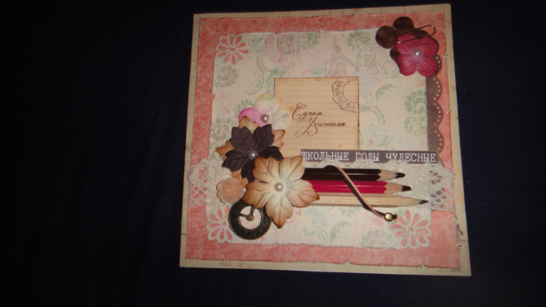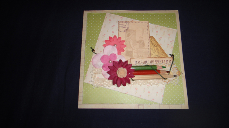 Открытки, приглашения, визиткиПривет всем) Вчера поступил срочный заказ на открытку ко дню учителя, а я была погружена полностью в альбом, идей абсолютно никаких и решила прогуляться по просторам интернета в поисках вдохновения)) и заодно ББ просмотрела по открыткам, мой взгляд упал на две замечательные открытки сделанные Светланой и Еленой, вдохновившись их работами, сотворила и я свою)) Большое спасибо девочкам за идеи!!! Критика приветствуется)