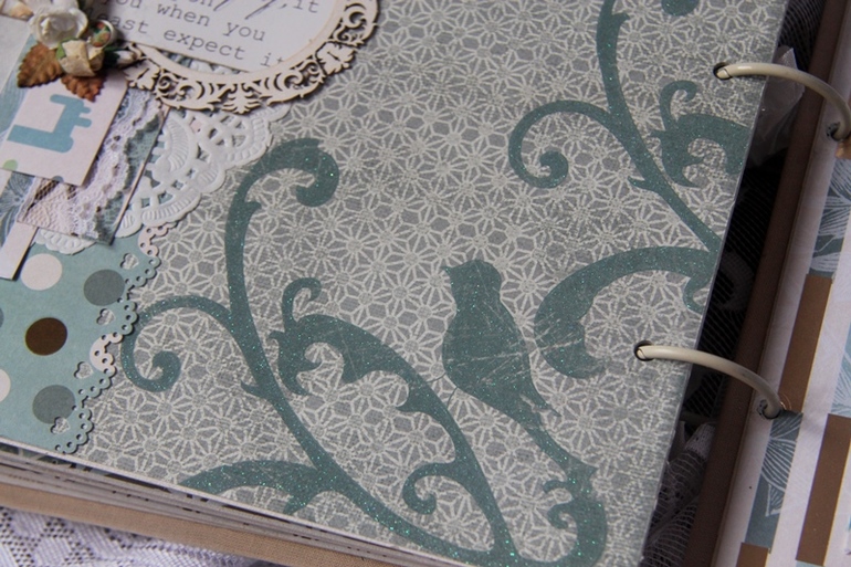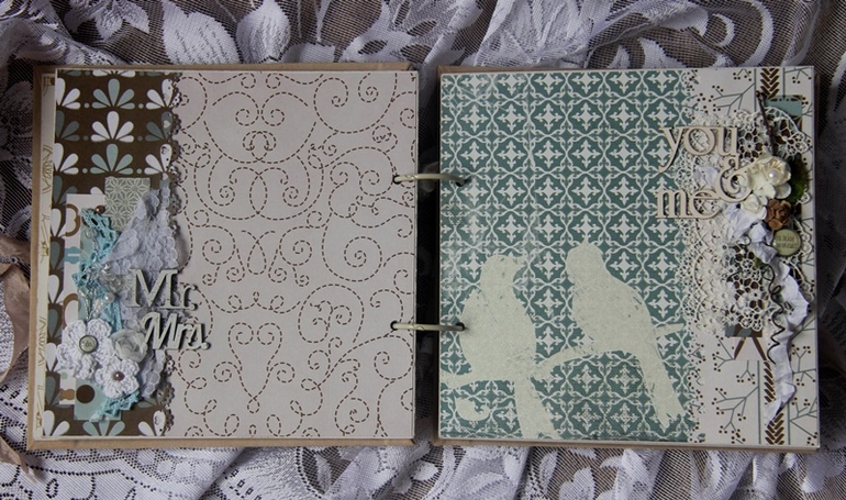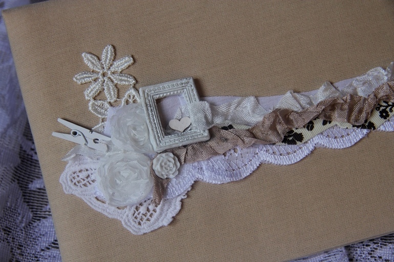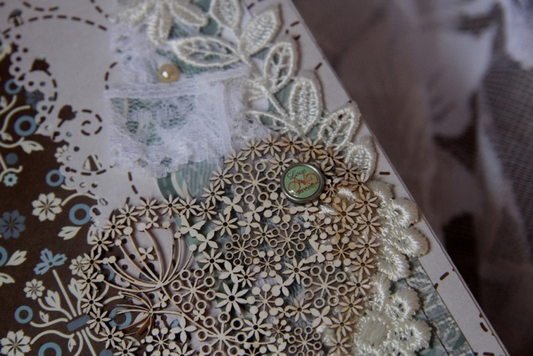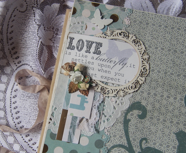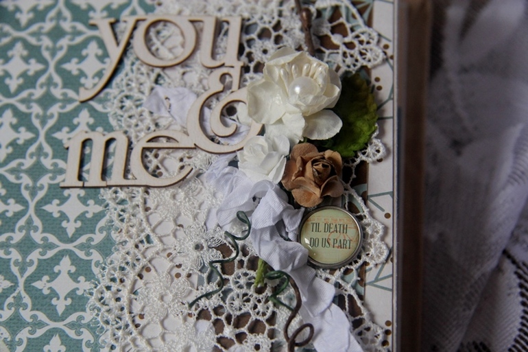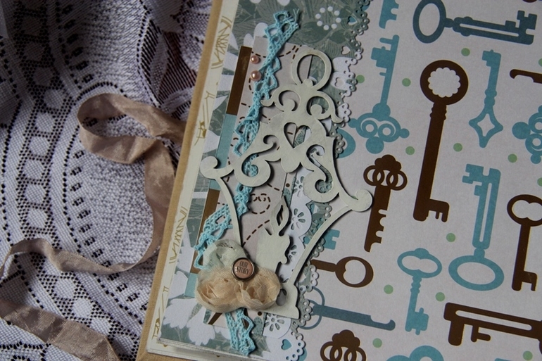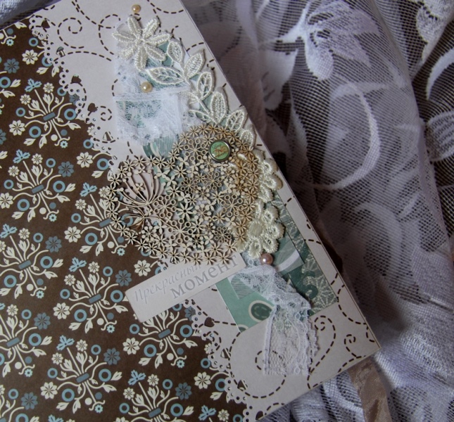 По ходу всего альбома я старалась использовать-чипборд,кружево(шебби ленты), чтобы было нечто общее в оформлении