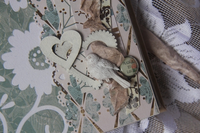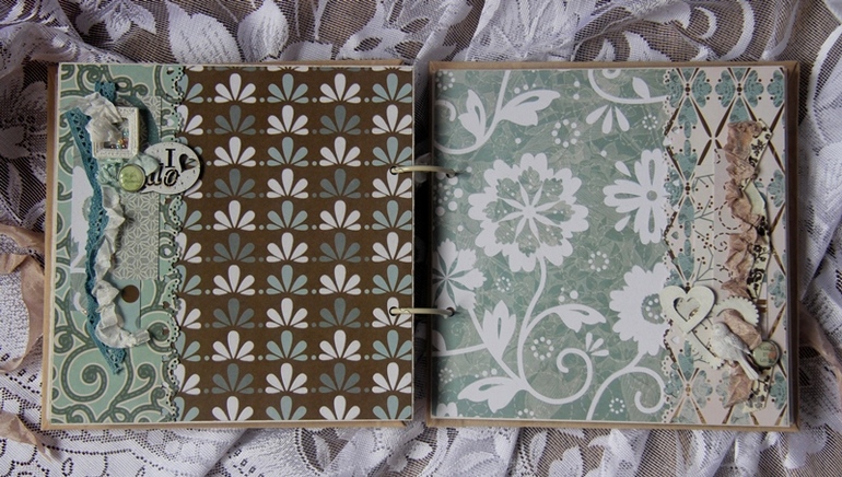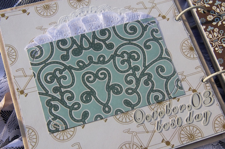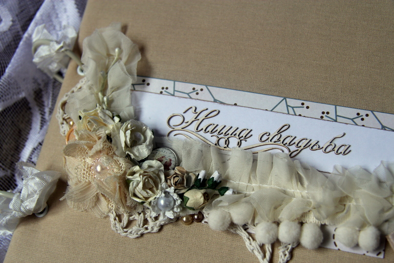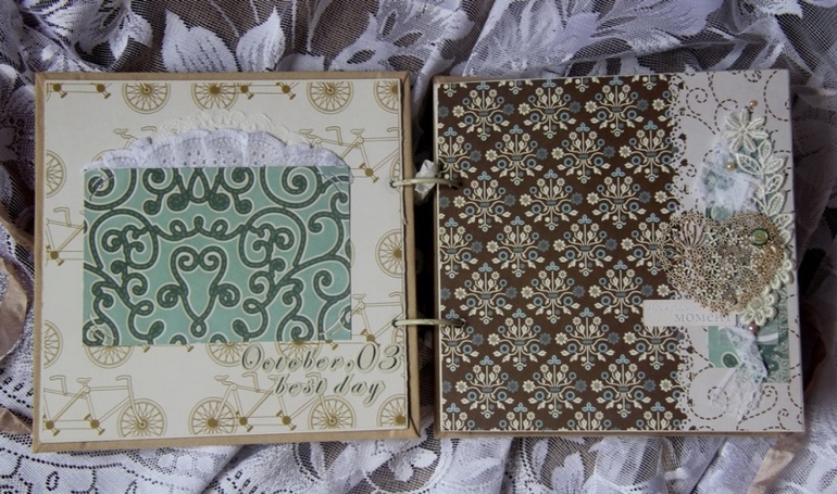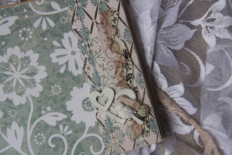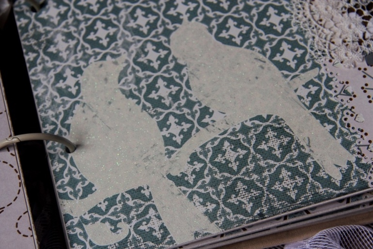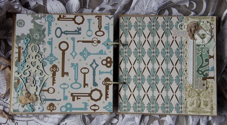 По ходу всего альбома я старалась использовать-чипборд,кружево(шебби ленты), чтобы было нечто общее в оформлении
