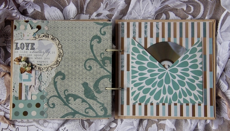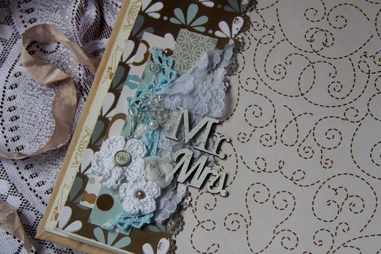 Делался в подарок на свадебный фуршет для молодой, креативной пары. Поэтому выбор бумаги тоже стал таким нетипичным для свадьбы - Винтажная от Scrapberry's