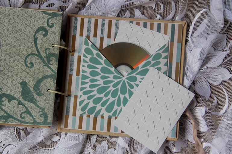 И последний разворот, слева кармашек для диска или дополнительных фото, или, как в моем случае, для уголков под фото)