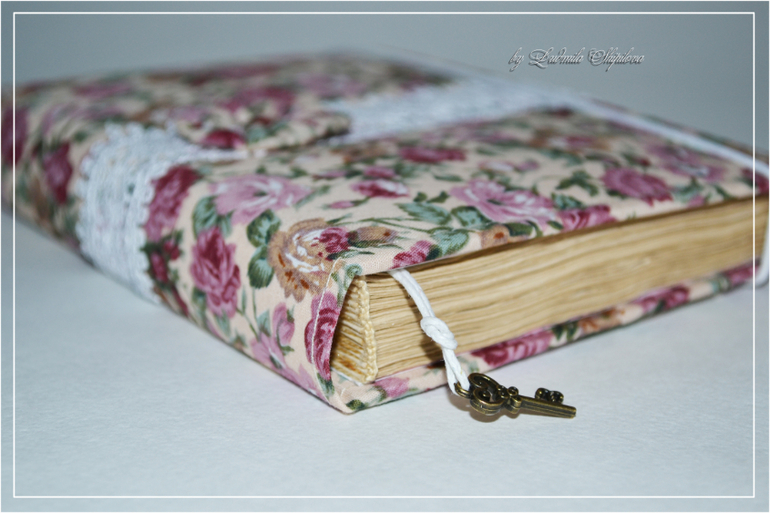Блокнот формата А6,блок 100 ароматных кофейных листов,закладка - шнур вощенный с ключиком.Ткань 100% хлопок, обложка проложена синтепоном для мягкости, прошита на швейной машинке. Из декора хлопковое кружево, цветочек из ткани и квадратный брадс