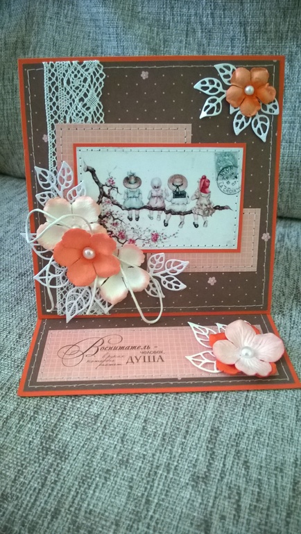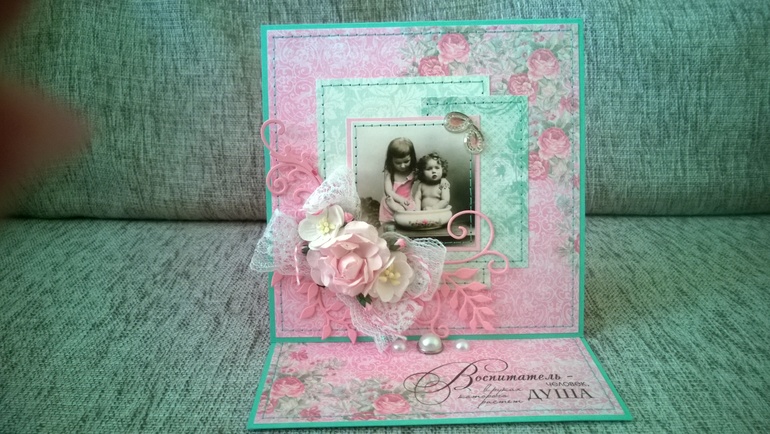 След открытка для второго воспитателя, которая ну очень хорошо относится к детям! Нам повезло!