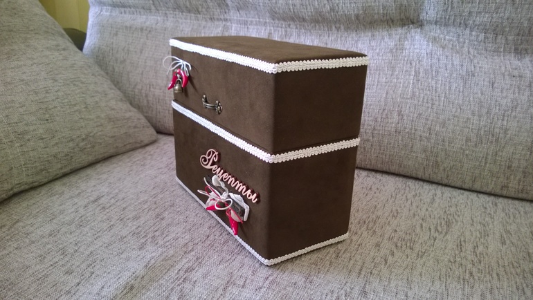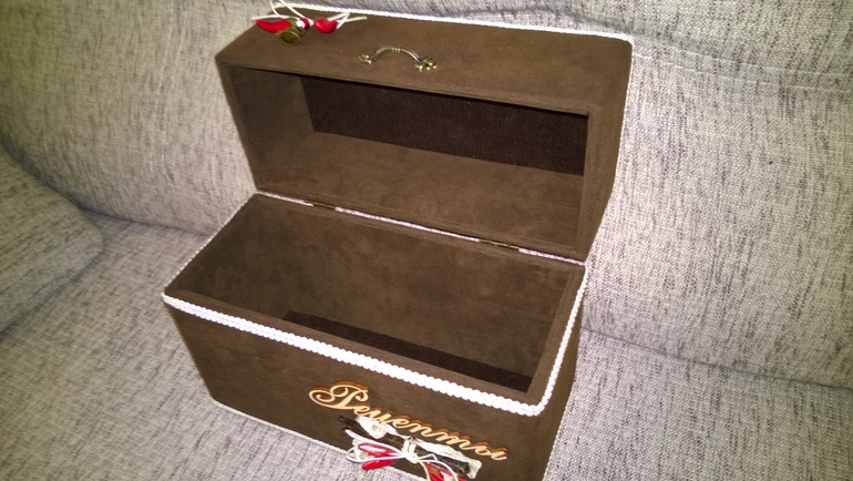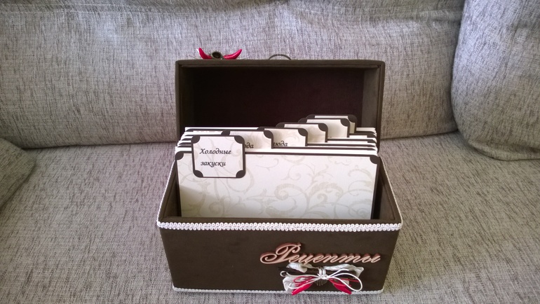 Сундук заказчица заказала для себя любимой. Размер 23 на 20 см, высота 18 см. Очень удобная вещь! Особенно для тех, кто любит записывать рецепты на бумажках. а потом лень переписывать в кулинарку (это про меня)