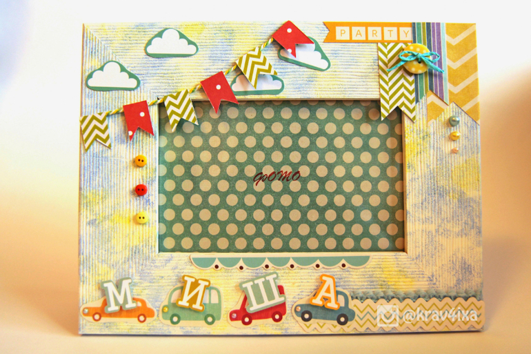 Рамки, магниты, настенные паноСегодня на скорую руку слепила такую вот рамочку. Заказали знакомые в качестве дополнения к основному подарку, который подарят ребенку