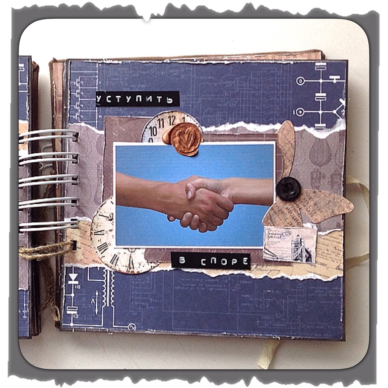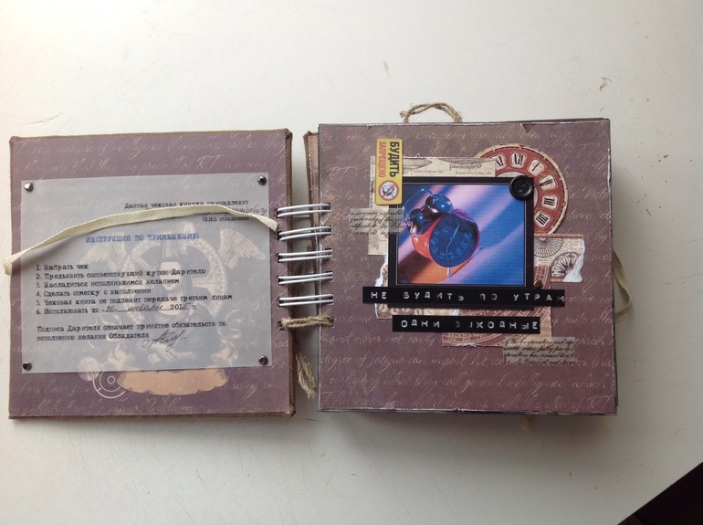 Вот, что у меня получилось: чековая книга пожеланий, 16х16. И, кстати, мужскую тему вообще я впервые делала, что получилось, судите сами...