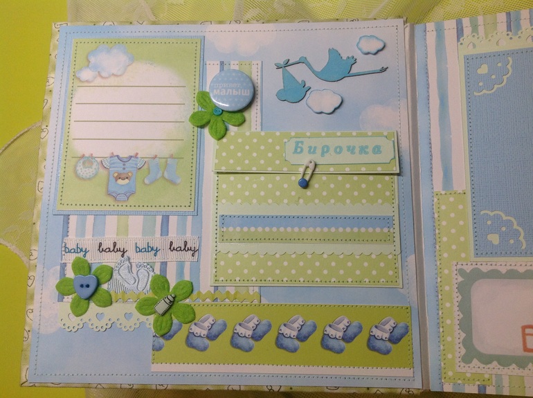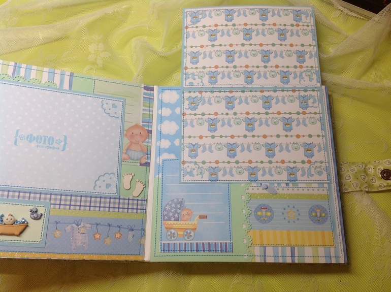 Юлия, здравствуйте! В данный момент этот альбом уже продан. Посмотрите, пожалуйста, у меня в дневнике есть еще готовые альбомы для мальчика на первый годик! Может что — то вам понравится.