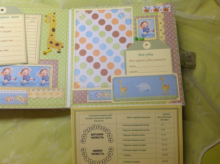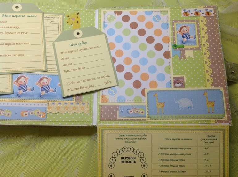 Альбомы ДетскиеВсем привет! Я с очередным альбомом для мальчика! Яркий, позитивный! Формат 20х20см, в мягкой обложке. Рассчитан на 19 фотографий формата10х15 и одну нестандартного размера. 6 разворотов, предусмотрен конвертик для бирочки, теги для записи достижений, таблица роста и веса, график роста зубиков. Смотрим