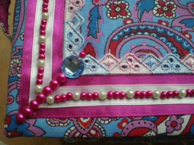 Спасибо! Это всего вторая моя работа. Ткань — вообще не ткань ))) это вискозные салфетки для кухни. Ткани однотонной подходящего цвета не нашла. Но больше я так делать не буду. )))