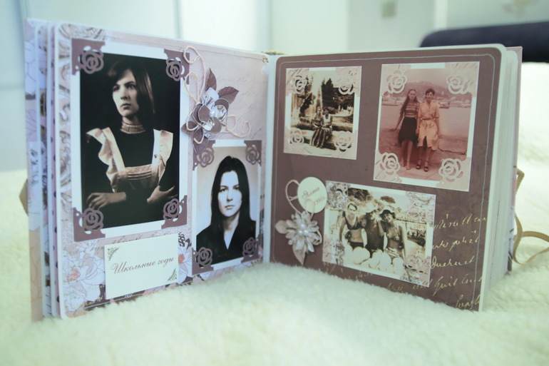 далее идут развороты про школьные годы, свадьбу и меня, а также молодость родителей