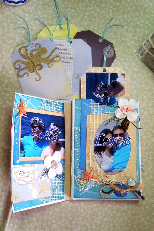 Хочу критики!!!Здравствуйте, дорогие Скрап Мастерицы!) Нужен Ваш совет! Очень мне нравиться скрапбукинг! Наверное, около года не могла решиться и попробовать, мягко скажем, не дешевое удовольствие... Но, вот собралась и натворила))). Сделала мини альбом-раскладушку в морском стиле и 2 папки для свидетельства о рождении.