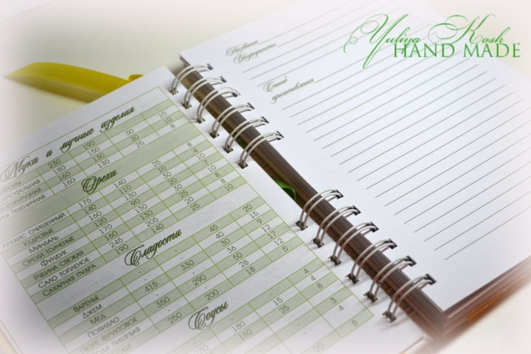 Книги пожеланий, чековые книжки, книжки желаний, кулинарные книгиСделалась такая сочная кулинарная книга......тоже в подарок...эта неделя насыщенная праздниками друзей и родных)))) Книгу очень приятно держать в руках)))Внутри она простая....хозяйке в помощь таблица мер и весов.....надо было еще разделителей добавить, но не было времени))))) Ну ничего след. раз исправлюсь)))
