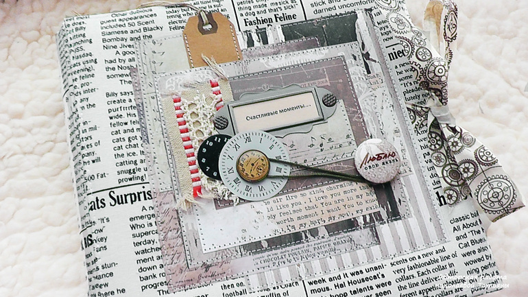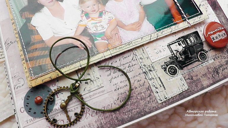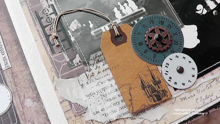 Альбом называется "Счастливые моменты", в нем собраны все фотографии от рождения, школы, армии, свадьбы, до сегодняшних дней, целая жизнь одного человека, точнее одной семьи....., моменты у меня напрямую ассоциируются со временем, поэтому основным украшением стали циферблаты, которых очень много по всему альбому, также на каждой страничке я старалась оставить места для пометок и комментариев, чтобы все можно было подписать...., в альбоме много раскладушек и тегов.....