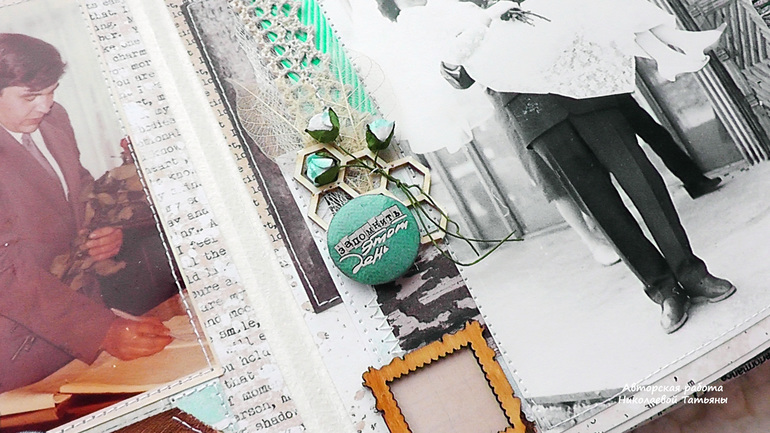 К сожалению показать его полностью вам не могу, так как там чужие личные фотографии, а заштриховывать лица считаю как-то совсем не эстетично, поэтому будут детальки, но и по ним вполне понятно, что из себя представляет этот альбом....