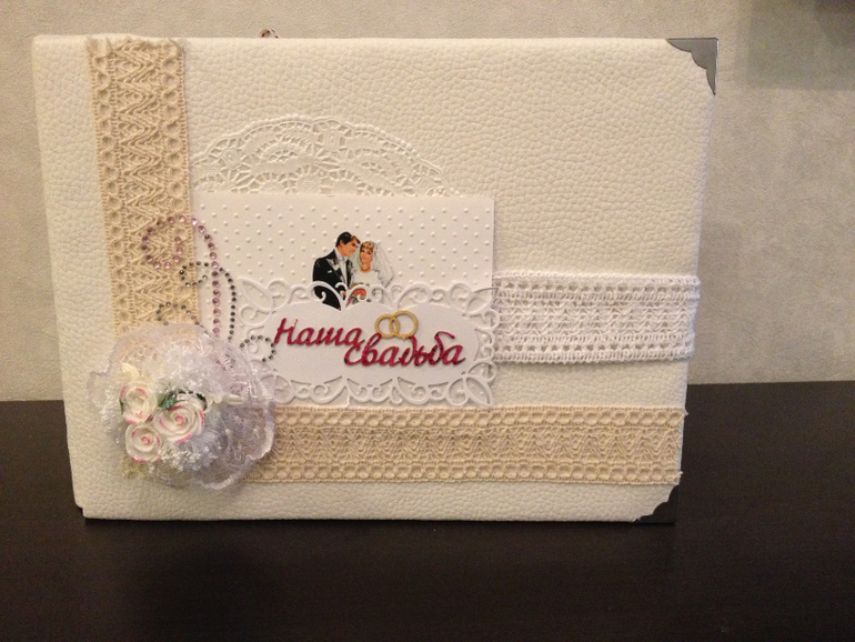 Альбомы СвадебныеАльбом 20*25, на 18 фотографий, разного формата. Переплет по Виноградовой.Бумага в чернобелых тонах. Использованы укращения: хлопковое кружево, кружевные салфетки, цветы, брадсы, стразы, метал.подвески, объемные наклейки, чипборд, вырубка, теги для записей.