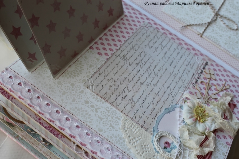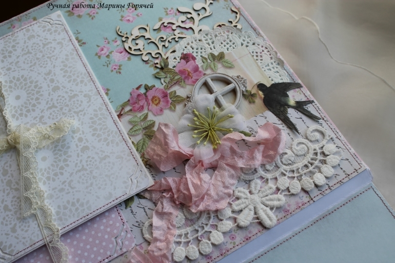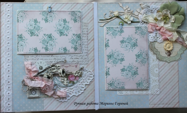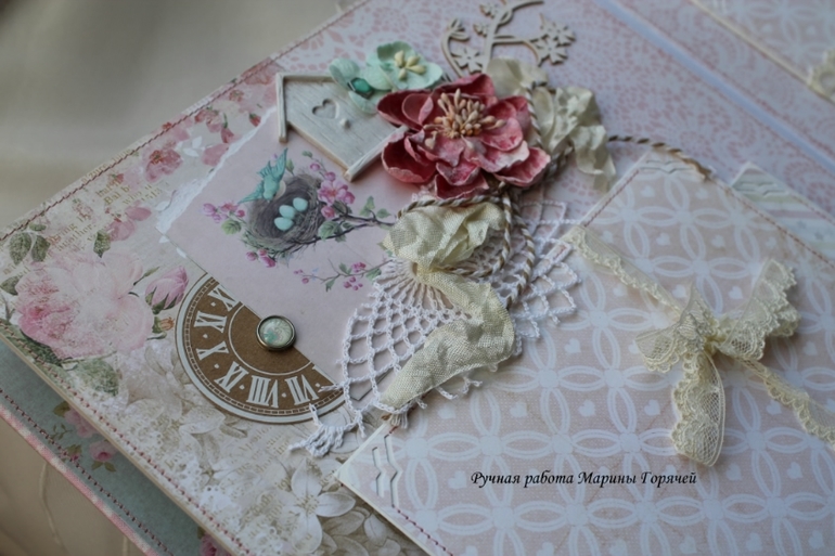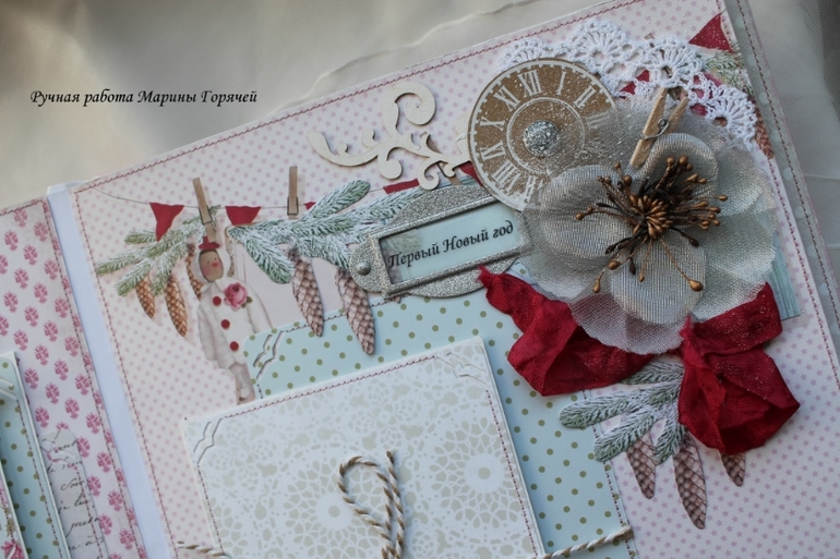 Замечательный альбом! Можно любоваться и любоваться! Отличная композиция, сколько деталей! Пока дошла написать отзыв пересмотрела 3 раза. Пошла еще рассматривать))) Интересно спрятаны клапаны у подложек для фото, попробую тоже так, если вы не против )