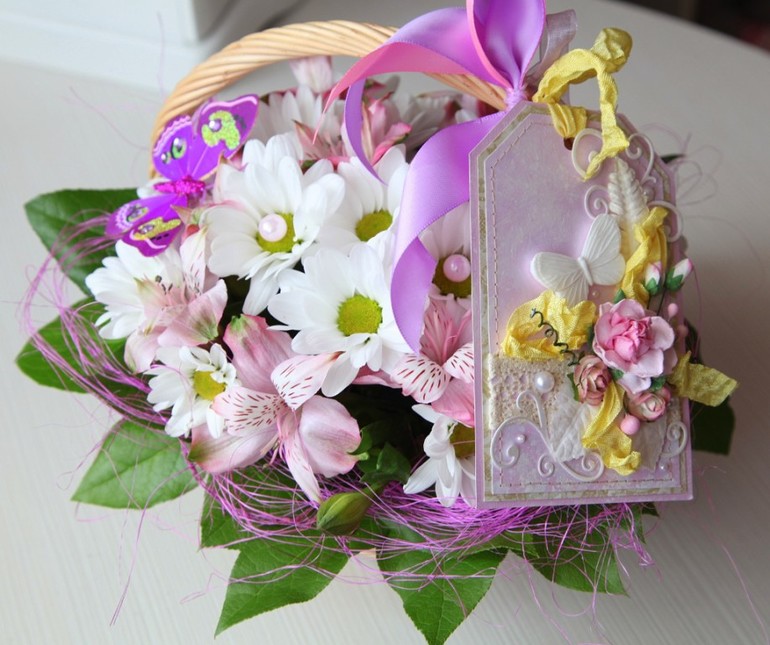 Открытки, приглашения, визиткиЧтобы не идти на день рождения с банальным денежным подарком, в дополнение решила сообразить букетик и тежик. Спасибо Елене (нашему модератору)! В свое время она подсказала мне не бояться делать цветочные композиции! Я, с ее разрешения, немного воспользовалась анализом её работ и за 1 час до выхода воспользовалась идеей!
