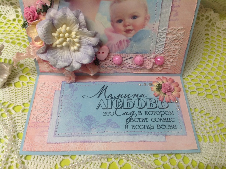 Привет. Оль! приятно, что моя работа вдохновляет)))По твоей открыточке вот, что скажу: лично для меня нижняя часть широкая, сколько она у тебя см?на обратной стороне серединку со словами помещай по центру для гармоничности. Кажется, будто она упала вниз)На лицевой стороне верхние цветочки след раз попробуй поместить в углу центральной картинки, а не верхней.Жду еще твоих открыток!