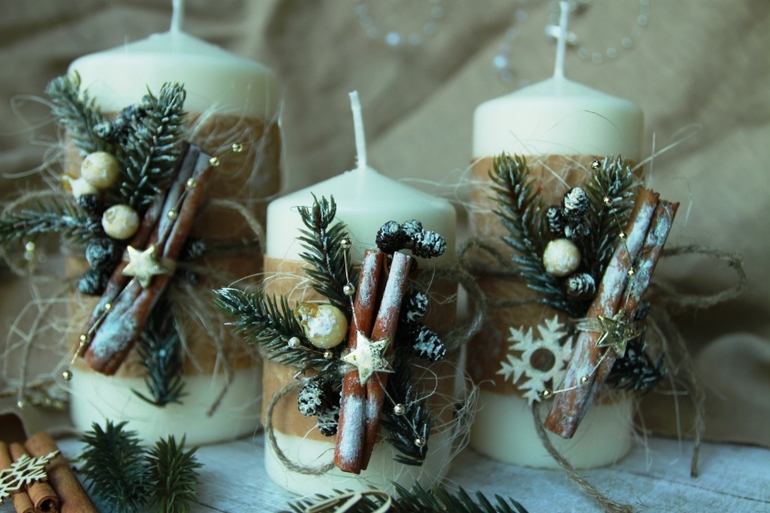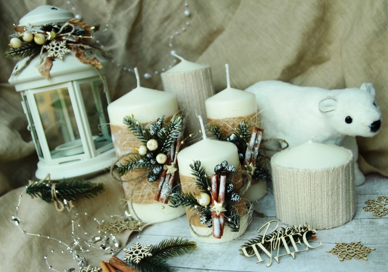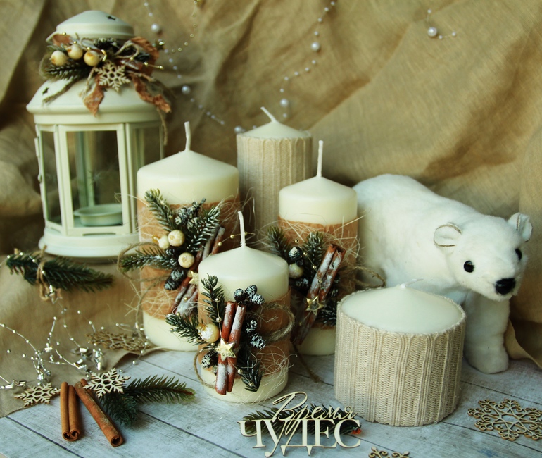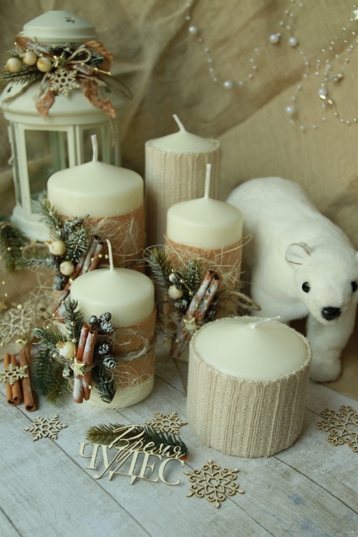 Как вы уже заметили, 2 свечки я "одела" в уютные и теплые свитера. Зима ведь )))