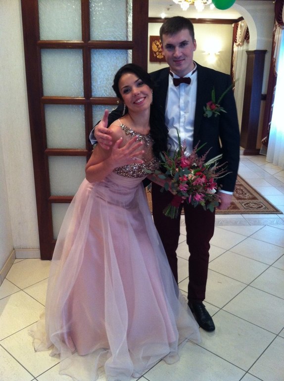 А вот и обещанное фото молодых! На фото плохо видно, но у жениха бордовые штаны. Что скажете, эти двое будут хорошо смотреться в альбоме?))