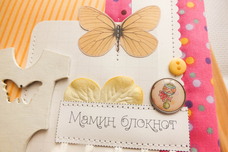 БлокнотыЕще один очень позитивный и яркий мамин блокнот) Внутри как всегда полезные странички, пара разделителей, кармашки на форзацах, конвертик, закладочка. Блокнотик ищет мамочку принцессы)