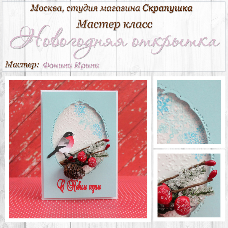 Новый год - время удивлять. Порадуйте своих близких красивой и необычной открыткой. На мастер-классе Вы сделаете с нуля объемную открытку, используя техники штампинга, вырубки, тиснения. Все материалы, включая объемные украшения, предоставляются на мастер-классе.