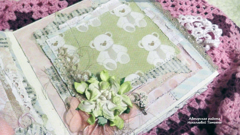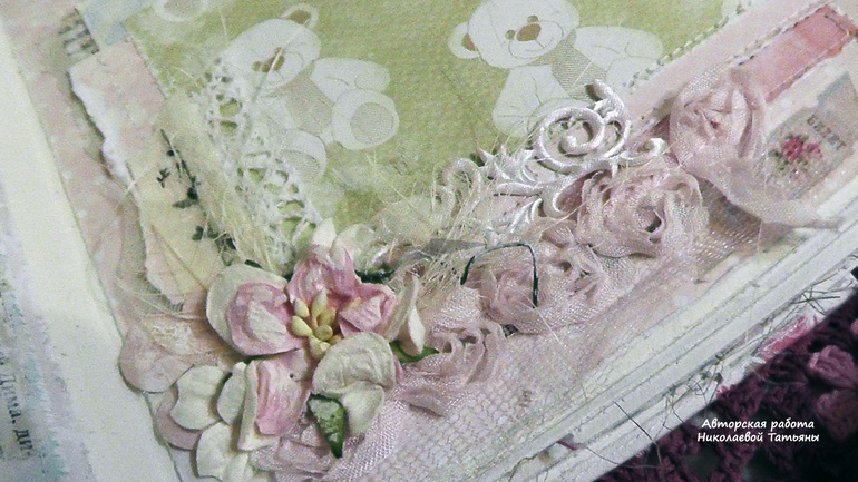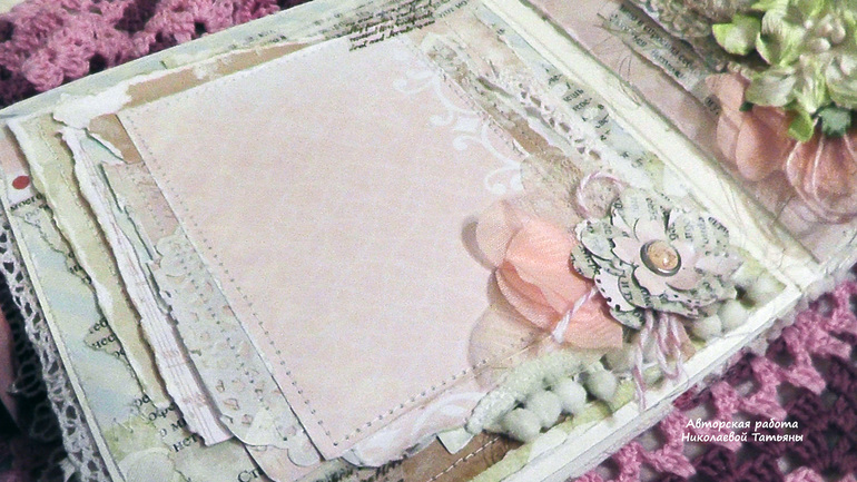 МиникиНа всех рукодельных страничках и во всех блогах уже во всю новый год......,а у меня все еще цветочки на уме......, и сегодня я к вам пришла с альбомом...., альбомчик-малыш 15*15 см, на 5 разворотиков, вмещает 9 маленьких фото (10*7,5 см), я не ставила себе задачу вместить много фото, мне просто хотелось поработать в таком стиле.... .Не буду много говорить, ныряйте под кат ( там будет мноооого фото) и погружайтесь в водоворот многослойности, нежности, кружева и цветов....