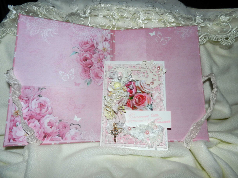 Папочка 20х15, внутри 2 кармашка, мягкая обложка, проложенная синтепоном+шебби-лента. Открыточка малютка 10х15. Цветы-цветы, а что еще нам, девочкам, нужно))))