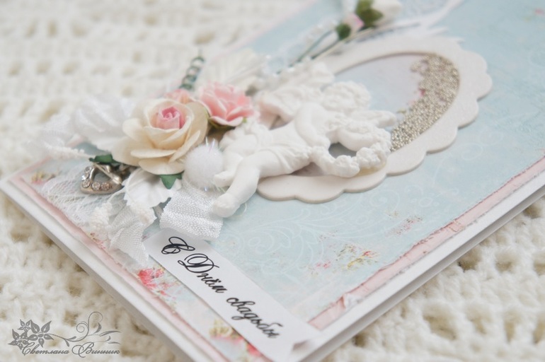 Очень красивая и нежная открытка!!! Света, подскажите, пожалуйста, а из чего вы сделали ангелочка?! (я купила жидкий пластик, но с ним у меня ничего не вышло:( фигурки получились с пузырьками)
