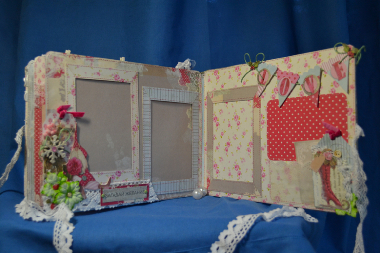 Альбомы других категорийДавно хотела поработать с этой бумагой, но было страшно, что все испорчу. На деле оказалось. что у страха глаза велики :)) Не так уж все и сложно :) Альбом размера 20 х27 см, на 2 фото +карман для хранения дополнительных фото или меморабилии. Почему то на фото левая сторона будто криво прострочена. На деле такого нет